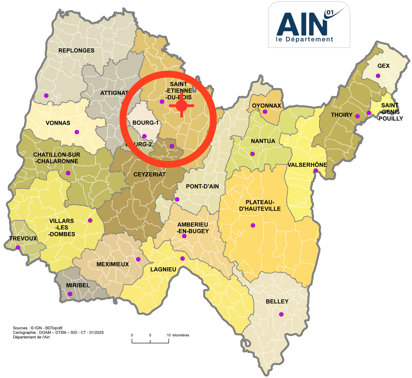 · Les secteurs de Bourg en Bresse, St Etienne du Bois, Villemotier, Coligny.